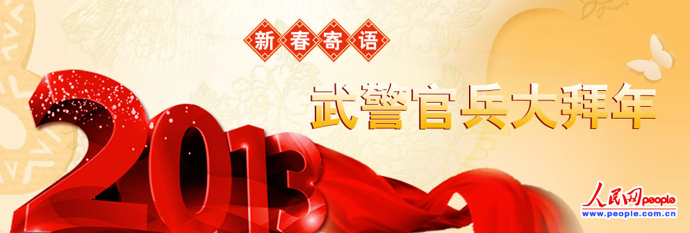 新年寄語: 高原磨練堅強意志,烈火鑄就鋼鐵戰士。值此新春佳節到來之際,我代表高原武警官兵向全國人民拜年,祝大家幸福安康,吉祥如意,扎西得勒!
