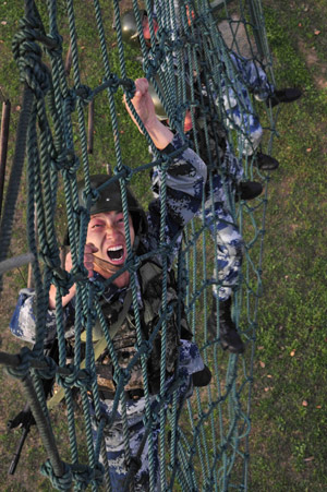 虎膽善謀——李柯 2004年8月,李柯代表中國空降兵遠赴愛沙尼亞參加“愛爾納突擊”國際偵察兵比武。與隊友一起穿密林、過沼澤、趟冰河,完成了七個科目十三項內容的比賽。
