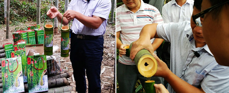張求華介紹說,麻坑村是革命老區,這里地質條件差, 經濟一直發展不起來。他退伍返鄉后,養過豬和竹鼠,種過竹筍,都沒有成功。張求華曾在深圳中英街當過邊防戰士,也許是因為軍人的責任感 ,他一直有著靠創業帶領村民脫貧的想法。這種以特殊工藝釀制的竹酒通過微信宣傳后,很快通過微商打開了銷路,在江西、湖南一帶都小有名氣。