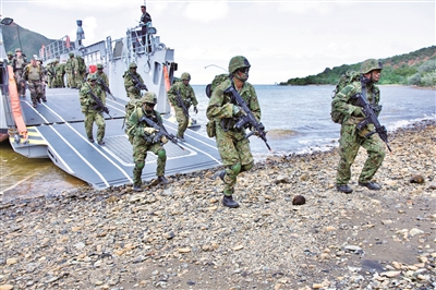 日本陸上自衛隊人員進行兩棲登陸演練。 10月中旬,日本防衛大臣中谷元在記者會上宣布,日本計劃于2026財年整合陸上自衛隊現有精銳作戰力量,組建新的特種作戰旅。