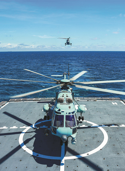 海軍某支隊開展艦機協同訓練