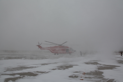 11時45分,伴著螺旋槳轉速的不斷加快,直升機穩穩地離開地面,在眾多雙眼睛的期盼目光中,“小紅點”在地面停車20余小時,經受野外零下30多度嚴寒的考驗后,成功起飛。