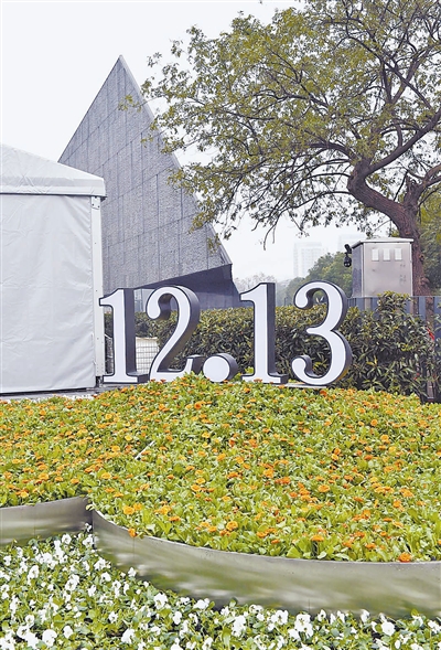 12月10日,南京大屠殺遇難同胞紀念館前設置“12·13”花壇。近日,南京的侵華日軍南京大屠殺遇難同胞紀念館建筑及周邊道路上布置了標語牌和花壇,以莊嚴肅穆的氣氛迎接首個國家公祭日。新華社記者 孫 參攝