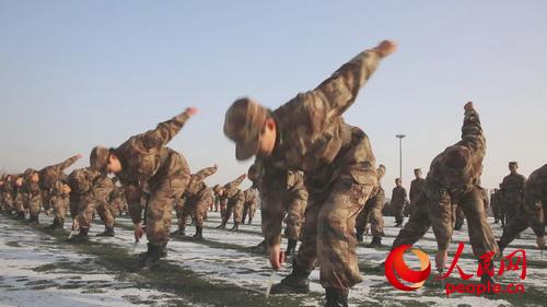 當兵不習武,不算盡義務,武藝練不精,不是合格兵。該基地牢固樹立“練兵為打仗,育兵為打贏”的思想,從難從嚴從實戰出發抓新兵軍事訓練,大力提高新兵的戰斗素養和軍事技能水平。筆者在該基地2014年度新兵訓練計劃中看到,他們突出強化新兵戰術基礎、實彈射擊和手榴彈投擲等實戰科目訓練,并結合實際,組織男兵練習擒敵拳,女兵練習捕俘刀。陸航女兵不是主要從事機務維修和通信專業嗎,她們還舞槍弄棒?帶著疑問,筆者來到了訓練場,看到100名女兵手握匕首,刻苦訓練,一招一式虎虎生威,殺聲震天,雖然室外溫度達到了零度以下,但汗水已經濕透了她們的頭發。訓練間隙,筆者采訪了新戰士于曉,“練兵精武是軍人的本分,戰場不分男女,都是戰斗員,打仗的本領誰都不能少!焙喍痰脑捳Z展現出一名年輕士兵的勇敢擔當。