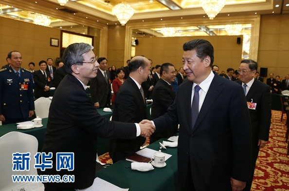 3月4日,中共中央總書記、國家主席、中央軍委主席習近平看望出席全國政協十二屆三次會議的民革、臺盟、臺聯委員,聽取委員們的意見和建議,并發表重要講話。中共中央政治局常委、全國政協主席俞正聲參加了看望和討論。新華社記者 鞠鵬 攝