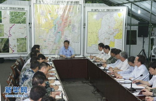 2013年5月21日-22日,在四川蘆山地震災區考察期間,到成都軍區視察調研