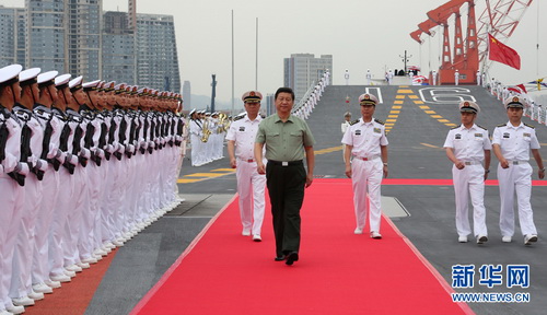 2013年8月28日下午,習近平檢閱遼寧艦水兵儀仗隊。新華社記者李剛攝
