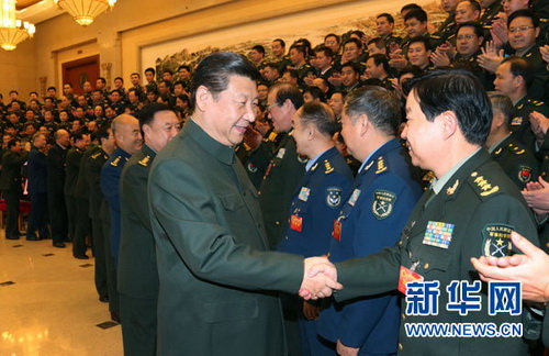 2013年11月6日,習近平在北京親切接見全軍黨的建設工作會議代表。 新華社記者 李剛 攝