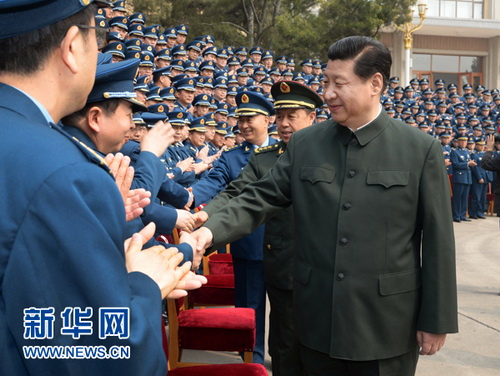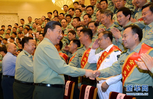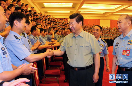 2014年6月17日,中共中央總書記、國家主席、中央軍委主席習近平在北京接見空軍第十二次黨代會代表。 新華社記者 李剛 攝