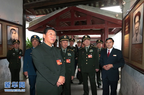 2014年10月31日,習近平參觀古田會議會址。新華社記者李剛攝