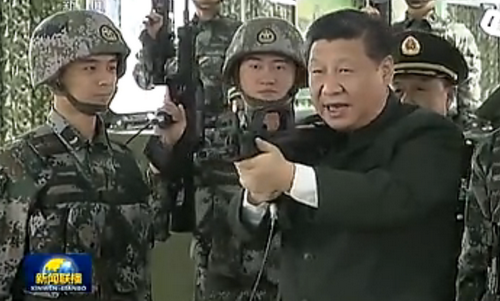 2014年12月20日,在視察解放軍駐澳門部隊時,習近平利用激光模擬射擊系統體驗步槍射擊要領。