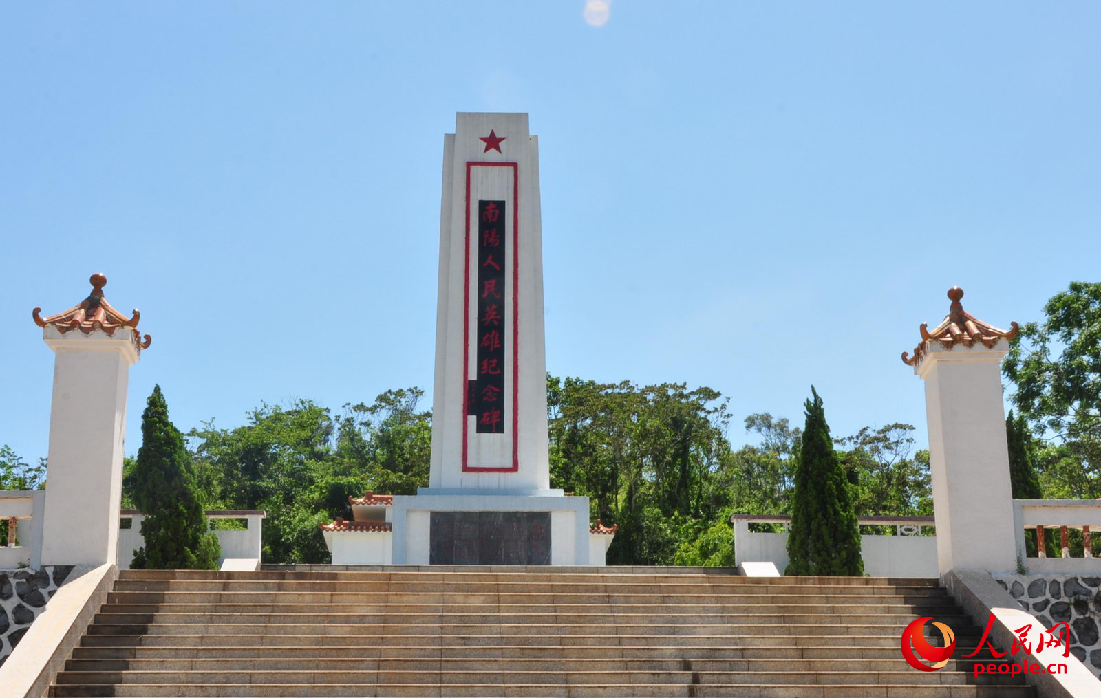 紀念碑主碑文是原海南省委書記許世杰題詞的“南陽人民英雄紀念碑”,還有瓊崖特委書記兼獨立總隊總隊長、瓊崖縱隊司令馮白駒將軍在1952年的題詞。