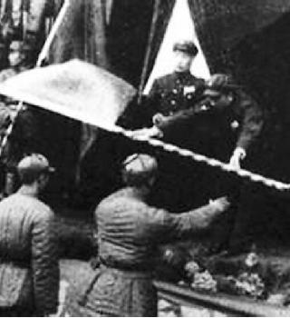 1949年1月,一連被授予連旗時的老照片(來源于該團團史館)