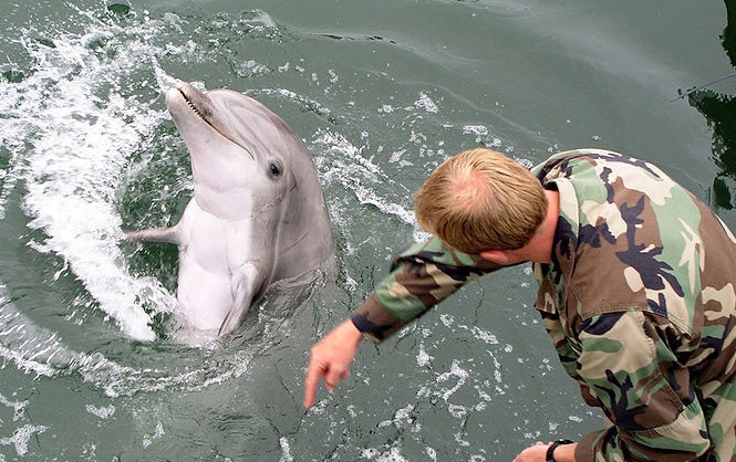 烏克蘭媒體曾援引烏克蘭軍方人士的話報道,海豚經過訓練后能夠分辨出敵我潛艇發動機的聲音差別,能尋找水雷和深水炸彈。如果頭部裝上匕首或手槍,還能攻擊敵方的“蛙人”,綁上炸彈后還能執行自殺性攻擊任務。