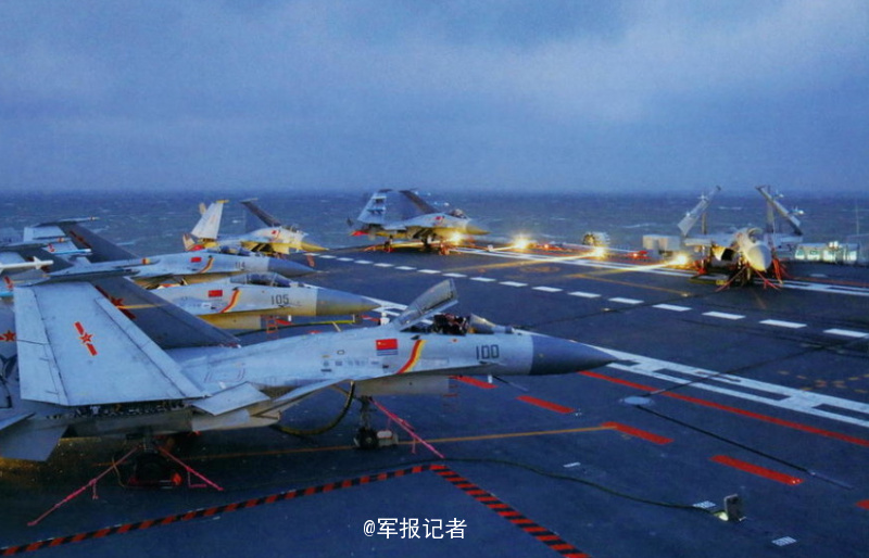 人民網北京5月18日電 (邱越)14日,《解放軍報》法人微博披露了中國第一艘航母遼寧艦的最新狀態,稱遼寧艦與殲-15的融合訓練“提速”,單日保障的殲-15起降架次已翻數倍。軍事專家在接受央視《今日亞洲》采訪時表示,殲-15艦載機起降架次翻倍說明遼寧艦已經能夠保障艦載機單日起降數十架次,作戰能力已獲飛越。