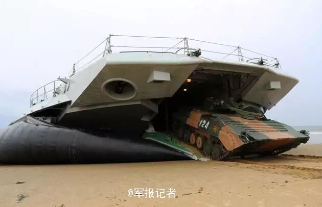 人民網北京5月24日電 (邱越)20日,《解放軍報》法人微博援引《當代海軍》雜志的消息稱,近日,海軍南海艦隊某登陸艦支隊在南海某海域組織某新型氣墊艇進行搶灘登陸訓練,重點組織實施了裝甲裝備快速裝卸載訓練。軍報微博更是將該新型氣墊艇稱為“中國海軍奪島神器”。軍事專家曹衛東在接受央視《今日亞洲》采訪時表示,“野!睔鈮|艇適合在南海眾多島礁之間運送兵力和裝備,可大大提高我軍登島作戰的速度和效率。