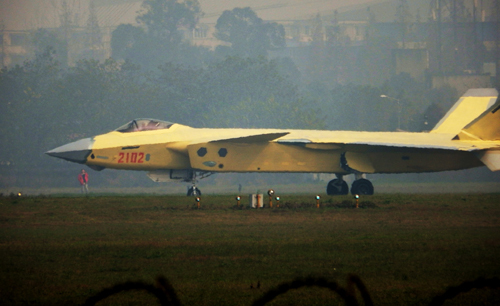 資料圖:2101號殲-20黃皮機,軍事觀察員認為這是殲-20戰機從試飛用原型機進化為試量產機型的標志。