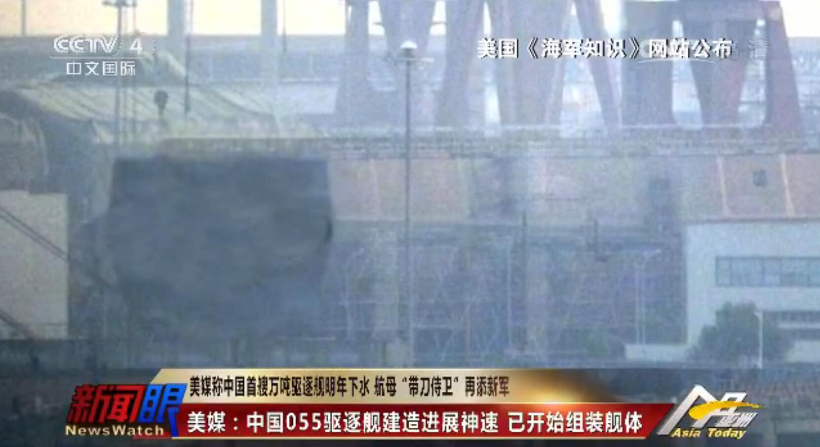 央視截圖:美媒公布的055型驅逐艦的照片。