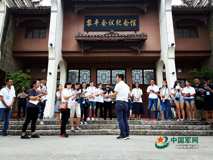黎平會議紀念館外,黎平縣旅游發展委員會常務副主任吳家賢接受大家采訪。黃慶松 攝