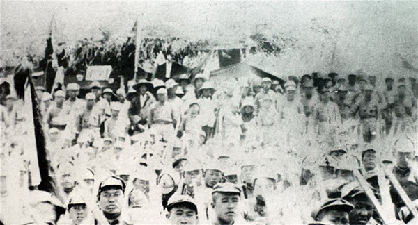 紅軍慶祝直羅鎮戰役勝利大會(資料照片)。