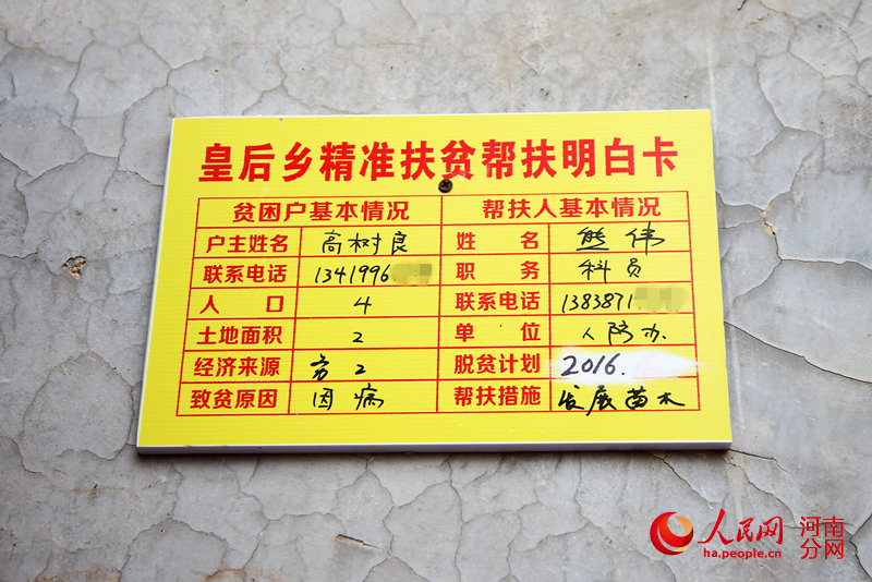 高大爺家貼的“精準扶貧幫扶明白卡”
