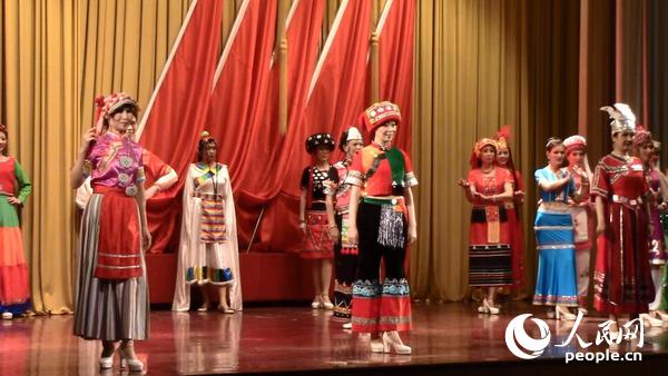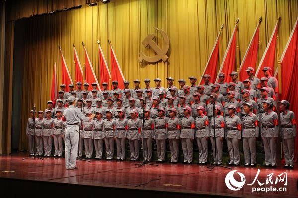 老兵方陣銀帆藝術團的演員們激情演唱了《七律?長征》、《延安頌》、《英雄贊歌》等革命歌曲。