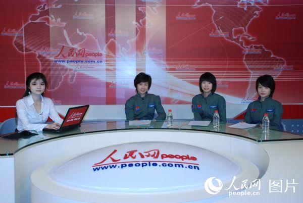 2010年2月28日上午10時至11時,余旭及其戰友張曉佳、周帥三名殲擊機女飛行員做客人民網演播室,接受獨家專訪并現場回答網友提問,這也是中國空軍殲擊機女飛行員第一次與網民、軍迷在線直接交流。右一為余旭。人民網記者 楊鐵虎攝