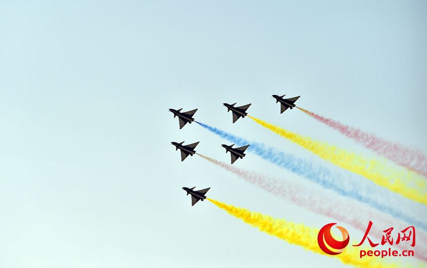 八一飛行表演隊在第十一屆中國航展現場進行飛行表演。(攝影:人民網記者 翁奇羽)