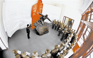 東部戰區陸軍某裝甲旅新任職排長走進該旅王杰紀念館,學習繼承老班長一不怕苦二不怕死的光榮傳統。趙 聰攝
