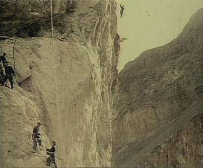 經過兩天的部署和準備,一場激烈的戰斗打響了。風鉆手用繩子拴住腰,從山頂攀到半山腰,懸在空中打風鉆。他們腳下就是波濤滾滾的印度河,大河像一頭張開大口的猛獸,令人恐懼。半空中的戰士們絲毫不敢疏忽,否則就會掉下懸崖,被河水吞噬。這時候我們才切身體會到什么叫“命懸一線”。