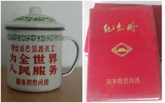 國務院慰問團向筑路人員贈送的紀念手冊和茶缸。(圖片由作者提供)