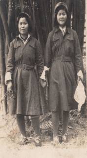 1949年作者與陳英班長在南昌合影(左:作者王玉霞,右:戰友陳英班長)。(照片由作者提供)