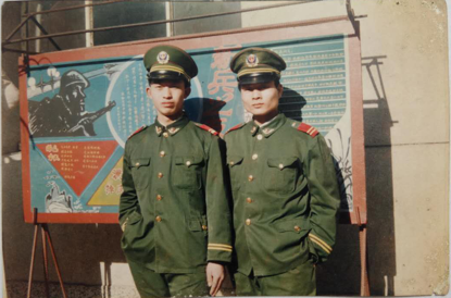 本文作者馬向前(左)和戰友合影