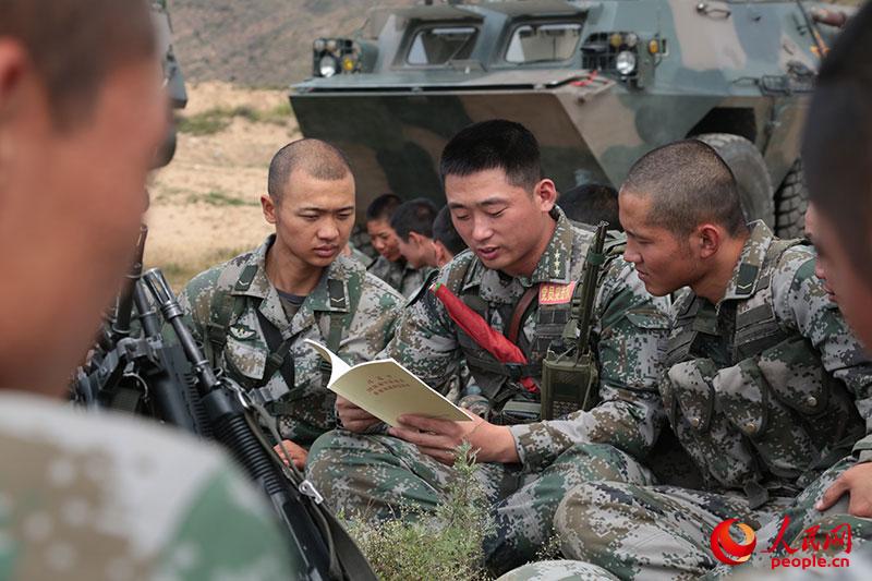 圖為訓練間隙連長張繼平組織官兵學習時的場景。