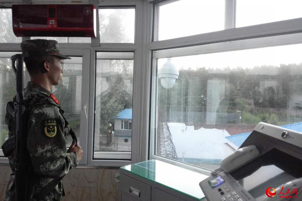 撫遠中隊三班班長唐福春在撫遠中隊1號哨位上執勤。劉云 攝