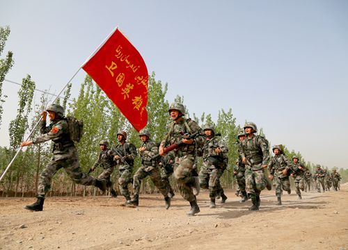強軍興軍樹標桿。2014年4月27日,黨的十八大之后習近平第一次到新疆考察來到新疆軍區某團民族六連,深情關懷并囑托官兵“相互關心、相互幫助、相互學習,積極宣傳黨的政策,維護民族團結,守好祖國邊疆!