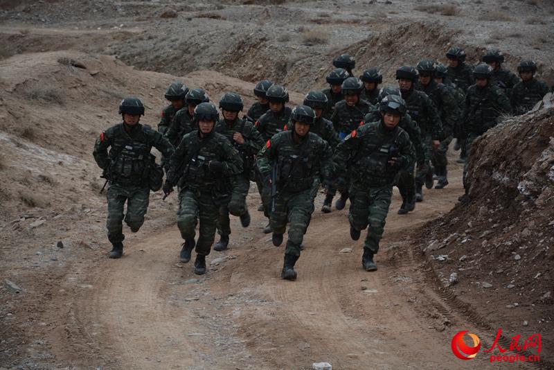特勤中隊指導員楊皓告訴記者,一次行動中,中隊一班班長郭棟棟接到作戰命令,帶領戰士們迅速向事發地域機動,圍捕暴恐分子。從支隊到任務現場有一百多公里,中間要穿過一片戈壁灘,車子無法前行,戰士們只能選擇跑步前進。