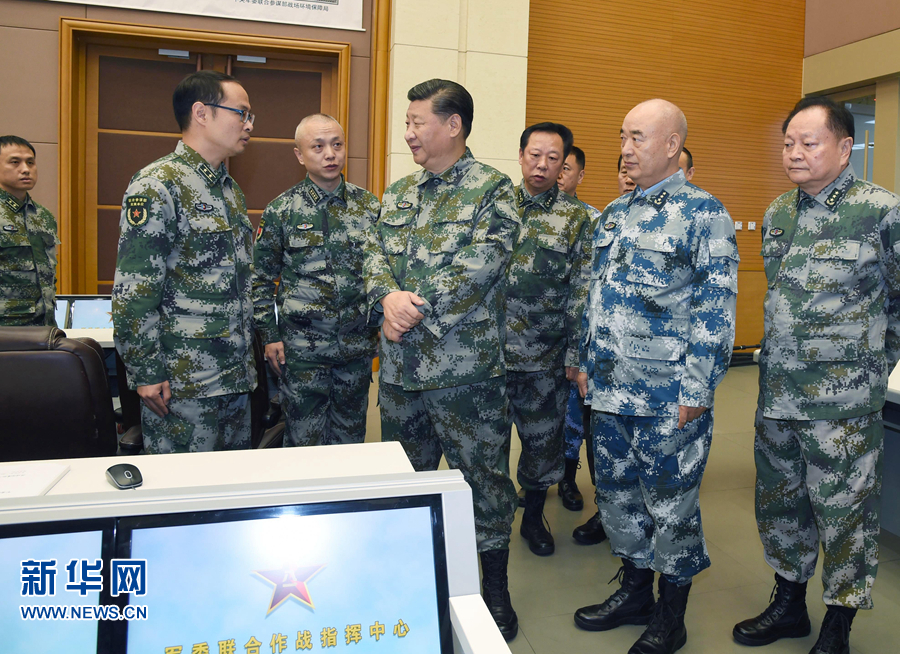 11月3日,中共中央總書記、國家主席、中央軍委主席、軍委聯指總指揮習近平視察軍委聯合作戰指揮中心,表明新一屆軍委貫徹落實黨的十九大精神、推動全軍各項工作向能打仗、打勝仗聚焦的鮮明態度。這是習近平察看了解中心值班備戰情況。新華社記者 李剛 攝