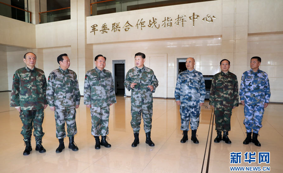 上午9時30分許,習近平一身戎裝來到軍委聯指中心大樓。他帶領軍委一班人研究軍委聯指中心建設情況。習近平指出,軍隊是要準備打仗的,軍委必須懂打仗、善謀略、會指揮,軍委工作一開始就要把備戰打仗的指揮棒立起來。今天到軍委聯指中心來,就是要亮明態度,從我做起,從軍委做起,強化備戰打仗導向,提高打贏本領,抓實備戰工作,帶領我軍真正做到能打仗、打勝仗,擔當起黨和人民賦予的新時代使命任務。
