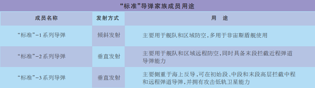 “標準”導彈是美國于1964年研制的一款全天候艦載防空反導導彈。經過幾十年的發展,該導彈已在基準版本上,發展成為一個大家族,有“標準”-1導彈、“標準”-2導彈、“標準”-3導彈和“標準”-6導彈4個系列,每系列還有多個改進型。目前美日歐等國使用的宙斯盾艦,大都配備“標準”-2系列導彈和“標準”-3系列導彈。