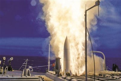 “標準”-6導彈從宙斯盾艦上發射瞬間。