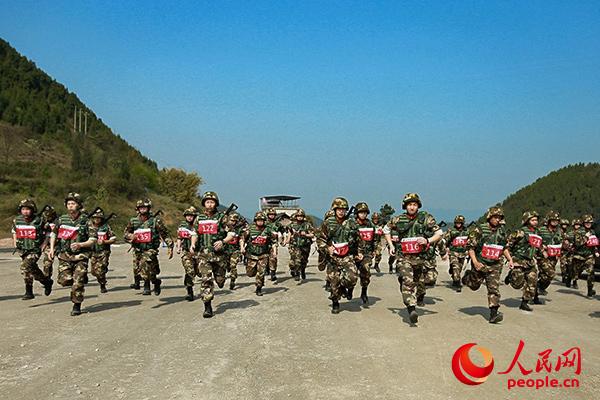 最后,伴隨著慷慨激昂的《中國人民解放軍軍歌》誓師大會落下帷幕。張德斌支隊長宣布開訓,參訓官兵劍指練兵場接受集訓第一課洗禮——五公里武裝越野考核。