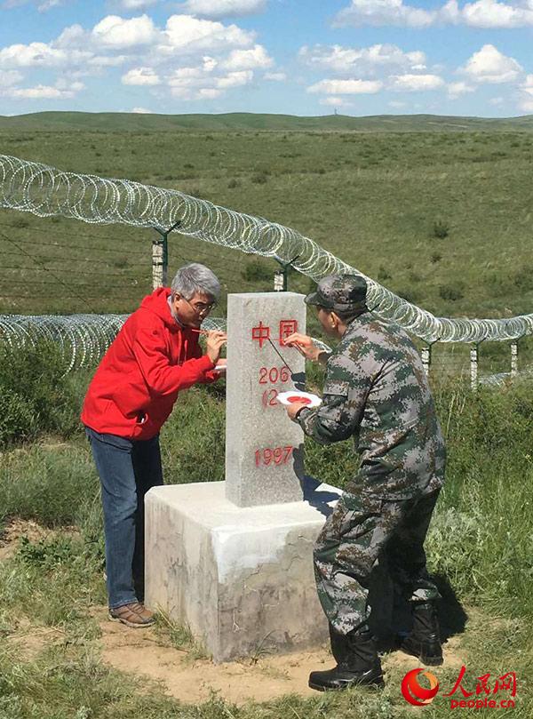 萬里邊關,國之藩籬。在小白楊哨所旁矗立的界碑上,參加活動的領導和嘉賓一筆一劃、認真地對界碑進行描紅,將活動推向高潮!暗谑膶弥袊髮W生年度人物“北京化工大學退役大學生士兵葉熱托里肯·巴達義,曾經也是一名邊防軍人,在當兵的歲月里讀懂了戍邊的光榮。他激動地說:“能為祖國界碑描紅是最自豪、最興奮的事!我將帶著邊防戰士的堅韌和勇敢,在菁菁校園中書寫人生更燦爛的篇章!