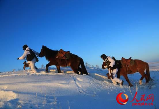 大雪天巡邏牽馬前行。(攝影:趙永峰)