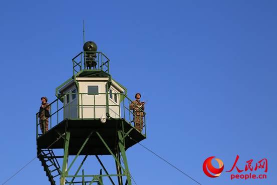 在塔斯提連前哨班的鋼鐵哨樓上,佩戴鋼槍的哨兵緊盯邊境線,24小時對全線進行監控、盤查。