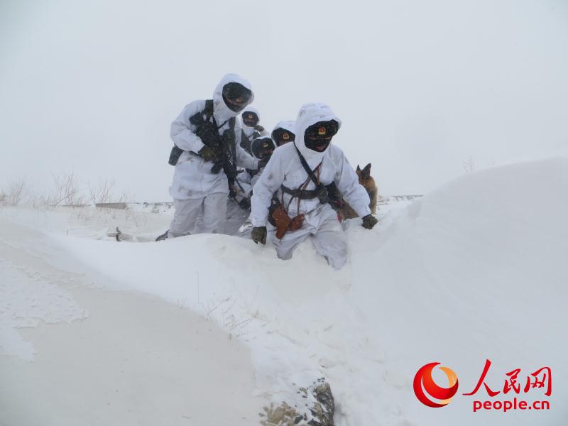 邊防官兵冒雪巡邏。王國鑫 攝