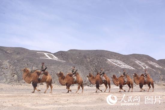 邊防官兵騎駱駝巡邏。(資料圖片)