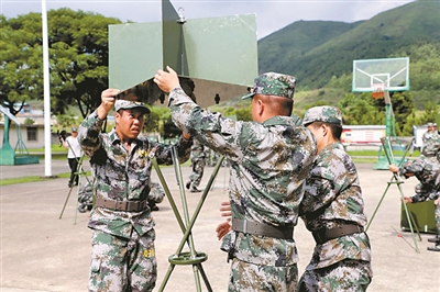 上圖為民兵進行角反射器架設和撤收訓練。王泉良 攝