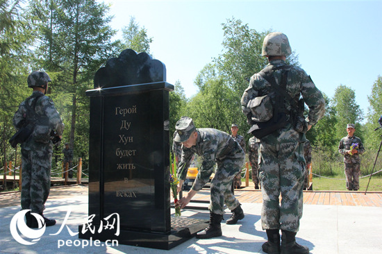 戰士們向杜宏烈士墓獻花。(人民網記者 曹昆 攝)