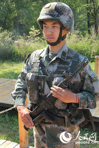 參加祭掃活動的戰士雙手被瞎虻咬出鮮血紋絲不動。(人民網記者 曹昆 攝)